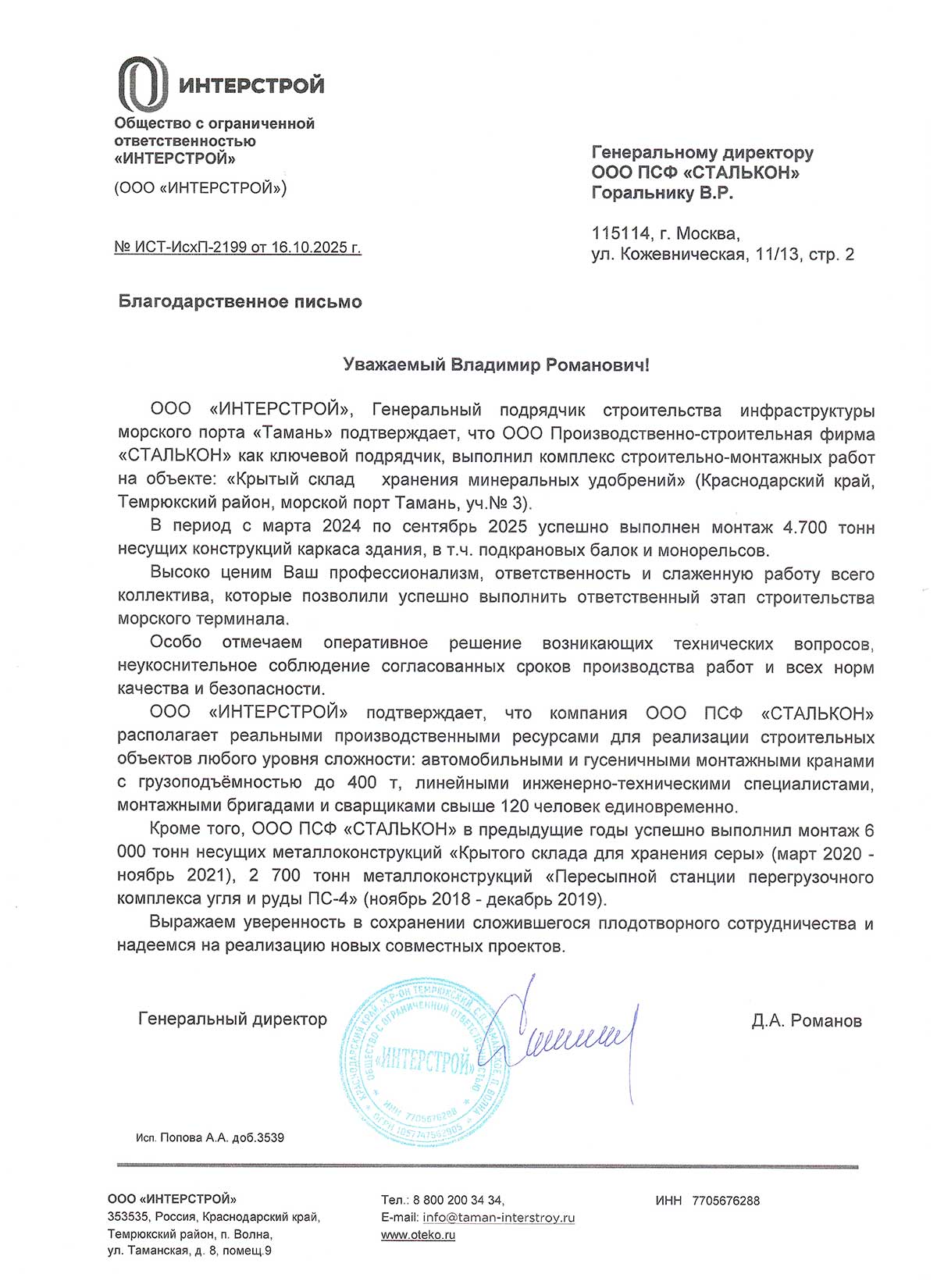 REFERENCEOOO "INTERSTROY"SEA PORT "TEMRUKE-Taman", 2025